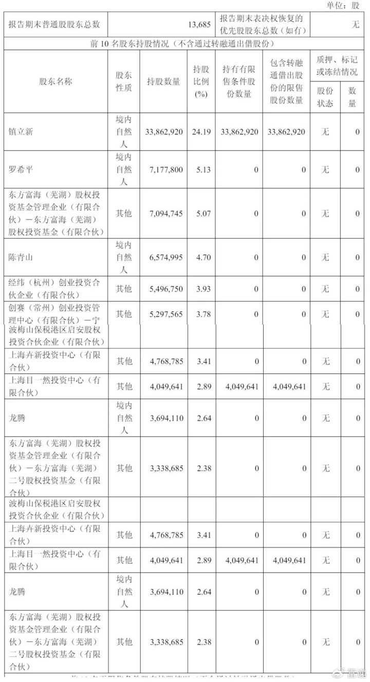 上海卉新投资中心(有限合伙)持股为3.41%,上海目一然投资中心(有限合伙)持股为2.89%,龙腾持股为2.64%,东方富海(芜湖)股权投资基金管理企业(有限合伙)-东方富海(芜湖)二号股权投资基金(有限合伙)持股为2.38%。