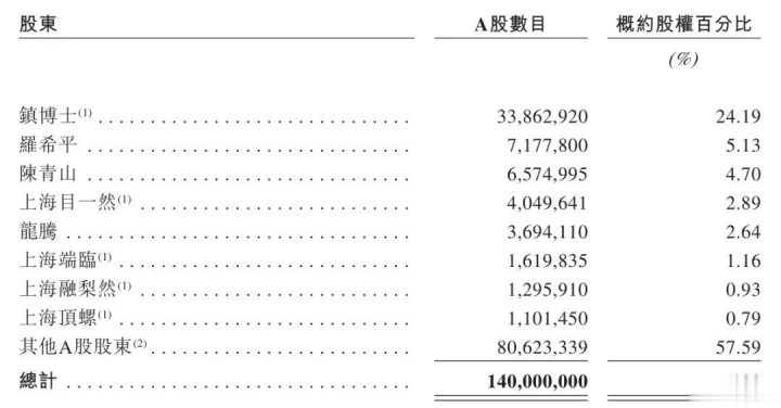 IPO前,镇博士控制公司已发行股本总额的约29.95%,其中24.19%由其直接拥有,5.76%通过镇博士控制的上海狮吼所控制的上海目一然、上海端临、上海融梨然及上海顶螺间接拥有。