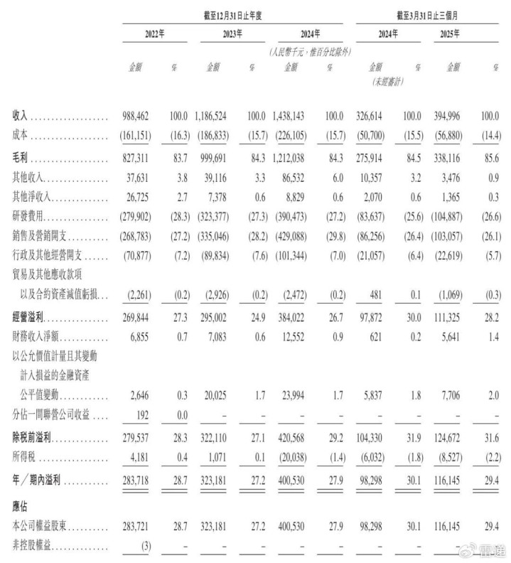 合合信息2022年、2023年、2024年期内利润分别为2.84亿元、3.23亿元、4亿元;期内利润率分别为28.7%、27.2%、27.9%。