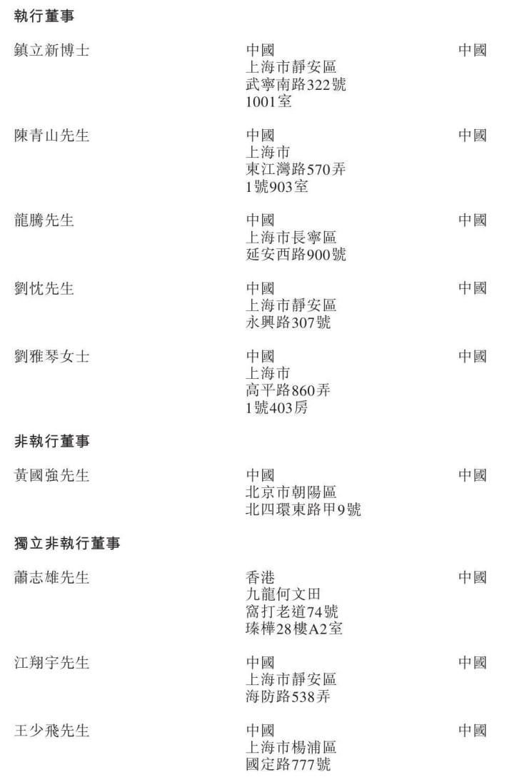 合合信息执行董事分别为镇立新博士、陈青山、龙腾、刘忱、刘雅琴女士,非执行董事为黄国强,独立非执行董事分别为萧志雄、江翔宇、王少飞。